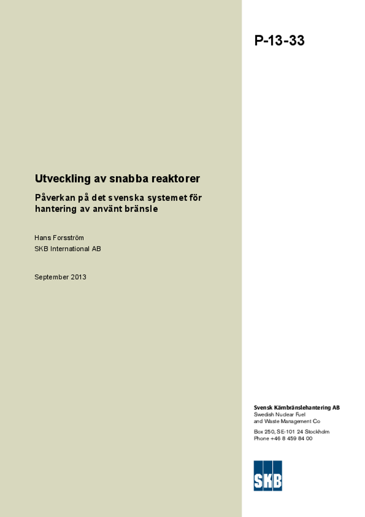 Utveckling av snabba reaktorer. Påverkan på det svenska systemet för hantering av använt bränsle