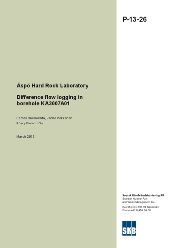 Äspö Hard Rock Laboratory. Difference flow logging in borehole KA3007A01