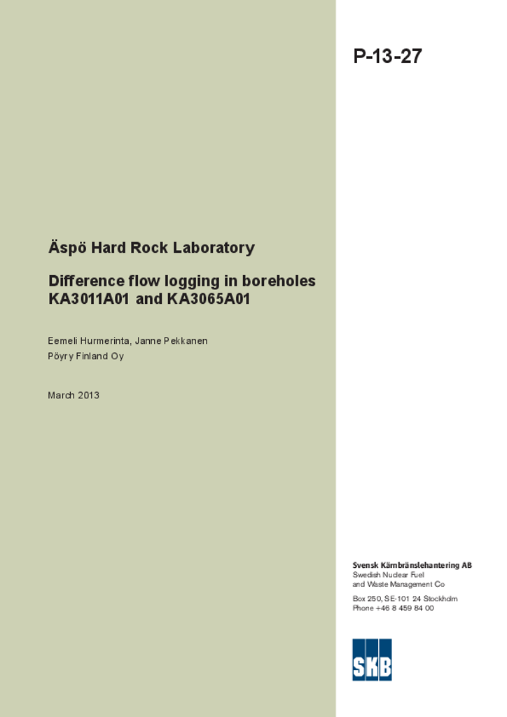 Äspö Hard Rock Laboratory. Difference flow logging in boreholes KA3011A01 and KA3065A01