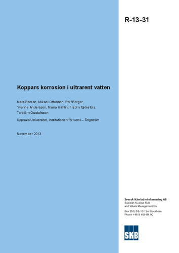 Koppars korrosion i ultrarent vatten Koppars korrosion i ultrarent vatten