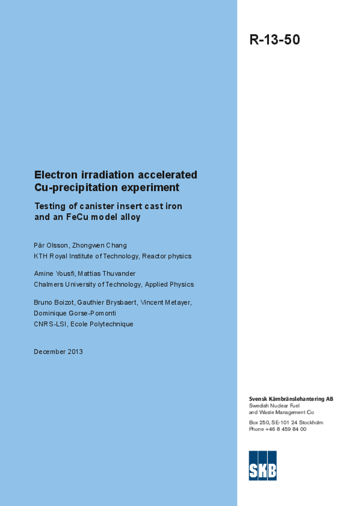 Electron irradiation accelerated Cu-precipitation experiment. Testing of canister insert cast iron and an FeCu model alloy