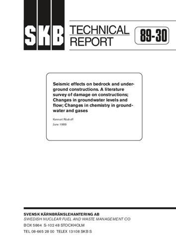 Seismic effects on bedrock and underground constructions. A literature survey of damage on constructions; changes in groundwater levels and flow; changes in chemistry in groundwater and gases