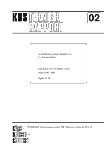 PM angående värmeledningstal hos jordmaterial (Memorandum concerning the thermal conductivity of soil)