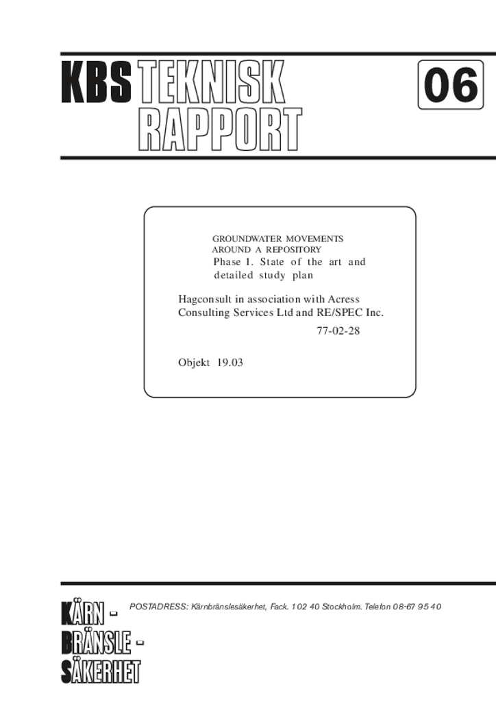 Groundwater movements around a repository, Phase 1, State of the art and detailed study plan
