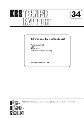 Tillverkning av bly-titan kapsel (Fabrication of lead-titanium canister)