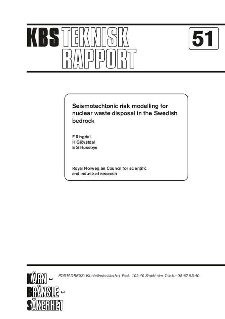 Seismotectonic risk modelling for nuclear waste disposal in the Swedish bedrock