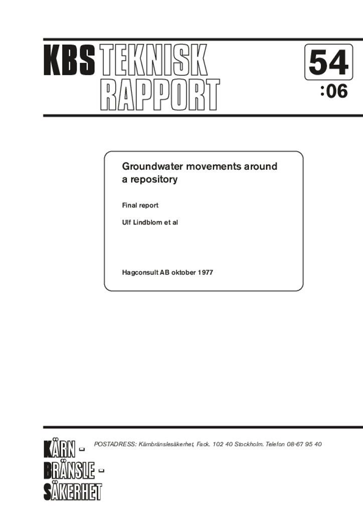 Groundwater movements around a repository. Several reports 54:01 - 54:06. 54:06 Final report