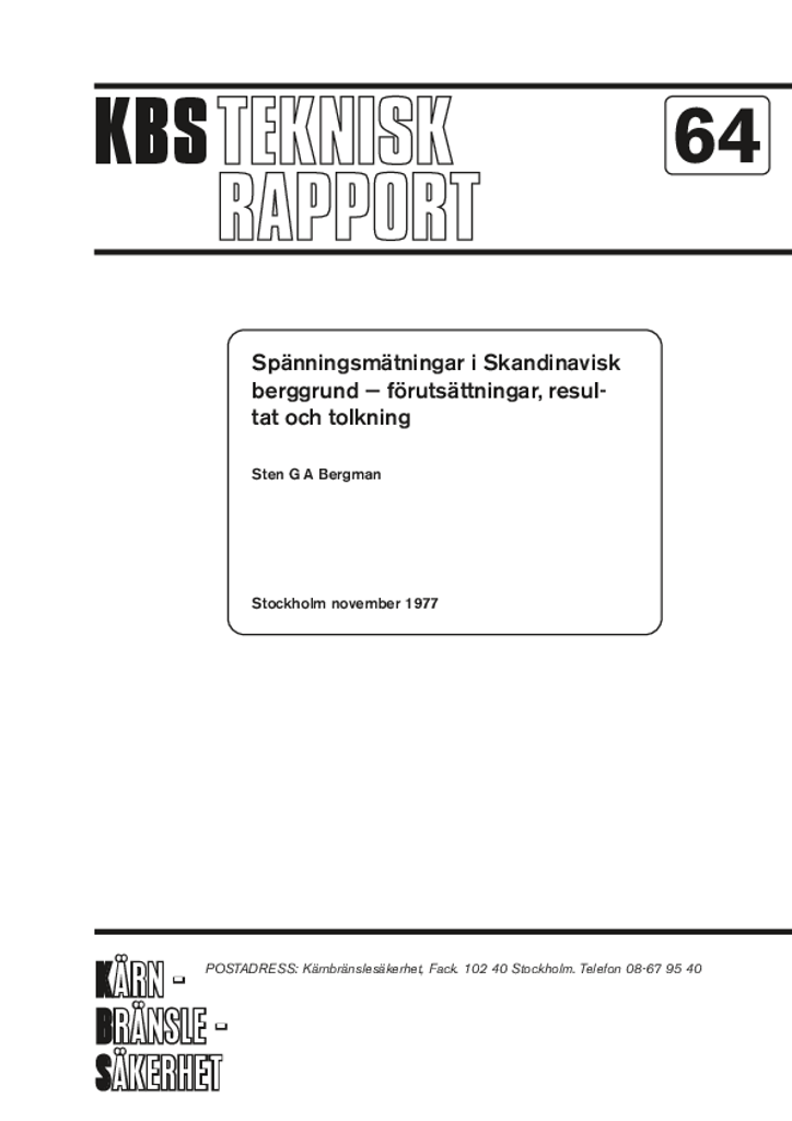Spänningsmätingar i skandinavisk berggrund - förutsättningar, resultat och tolkning (Stress measurements in Scandinavian bedrock - premises, results and interpretation)