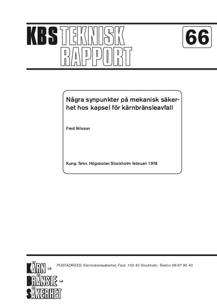 Några synpunkter på mekanisk säkerhet hos kapsel för kärnbränsleavfall (Viewpoints on the mechanical reliability of a canister for nuclear waste)