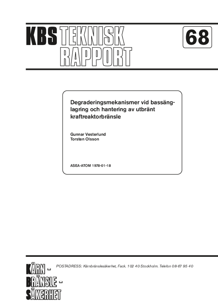 Degraderingsmekanismer vid bassänglagring och hanterig av utbränt kraftreaktorbränsle (Degradation mechanisms in connection with pool storage and handling of spent nuclear reactor fuel)
