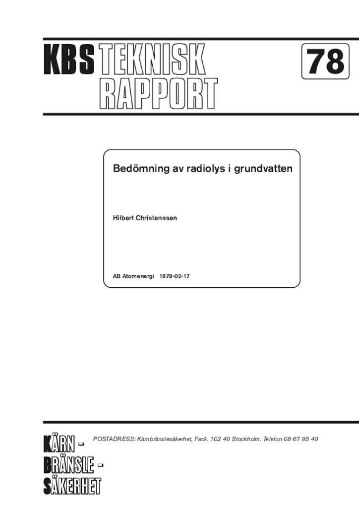 Bedömning av radiolys i grundvatten (Evaluation of radiolysis of groundwater)