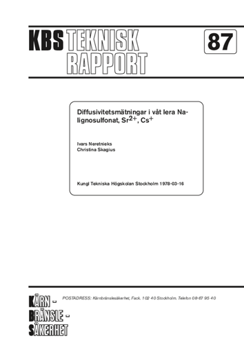 Diffusivitetsmätningar i våt lera Na-lignosulfonat Sr2+, Cs+ (Diffusivity measurements in wet clay, Na-lignosulphonate Sr2+, Cs+)