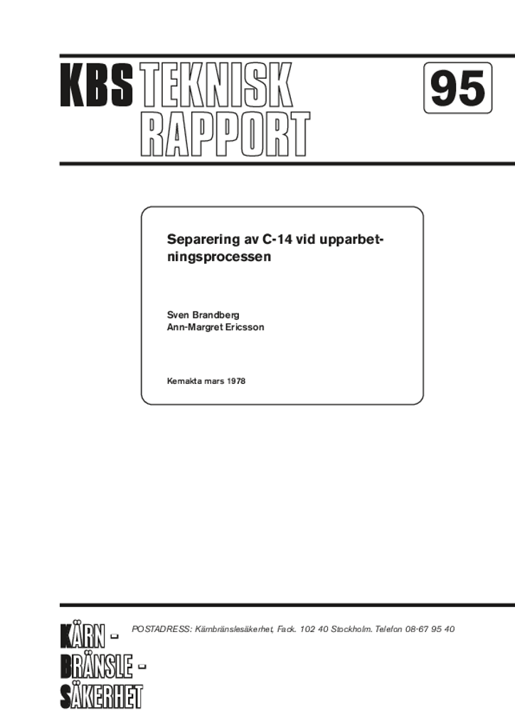 Separering av C-14 vid upparbetningsprocessen (Separation of C-14 in reprocessing)