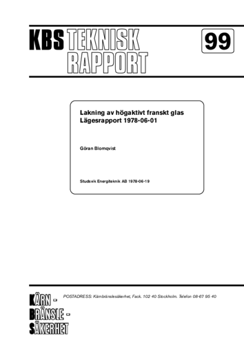 Lakning av högaktivt franskt glas (Leaching of high-level radioactive French glass. Status report).