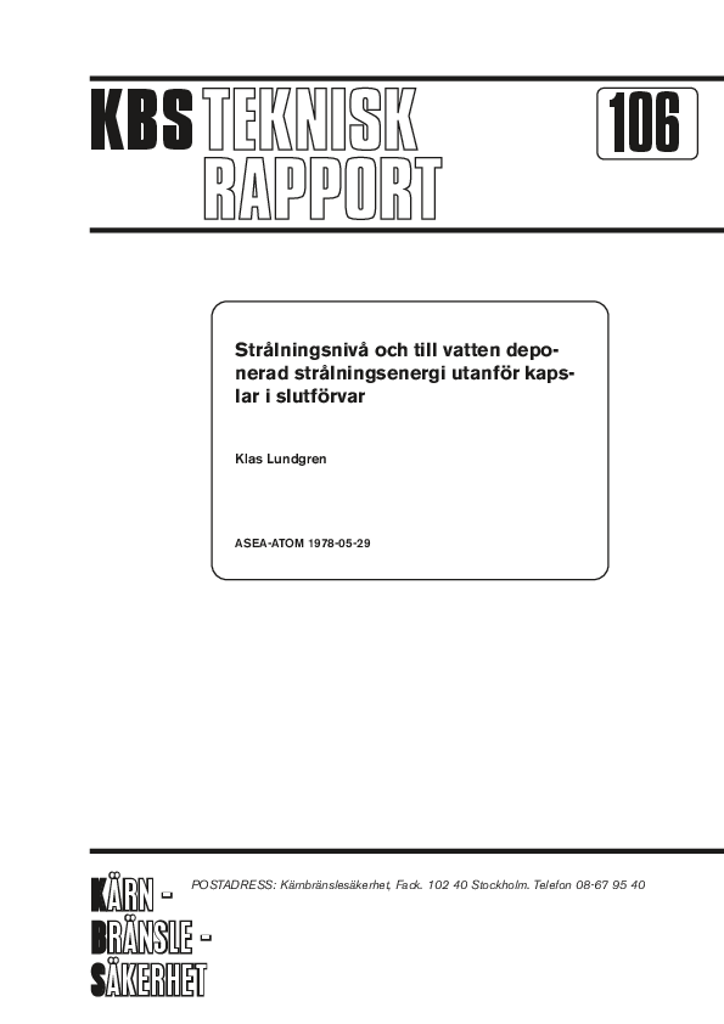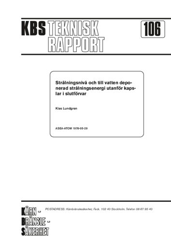 Strålningsnivå och till vatten deponerad strålningsenergi utanför kapslar i slutförvaret (Radiation level and radiant energy imparted to water outside of canisters in the final repository)