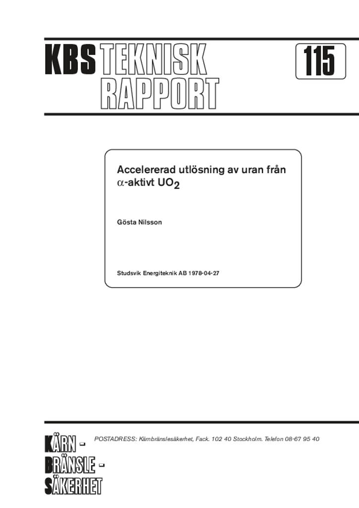 Accelererad utlösning av uran från alfa-aktivt UO2 (Accelerated dissolution of uranium from alpha-active UO2)
