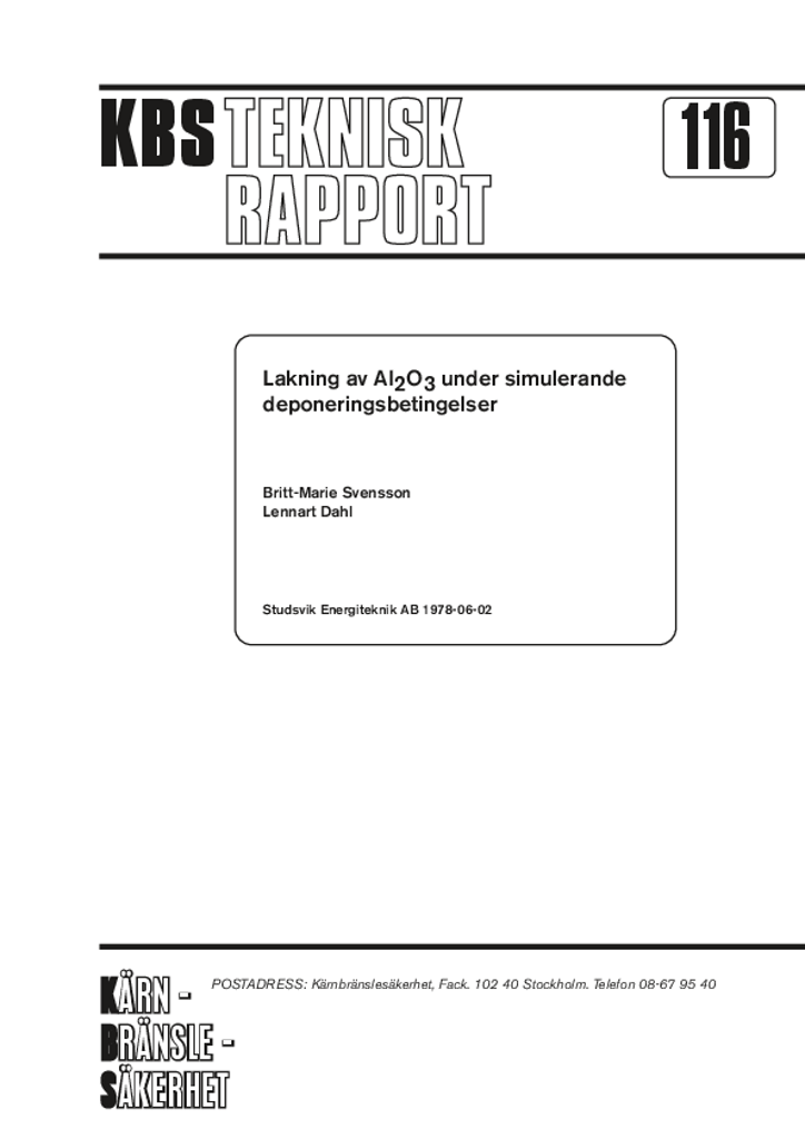 Lakning av Al2O3 under simulerande deponeringsbetingelser (Leaching of Al2O3 under simulated repository conditions)