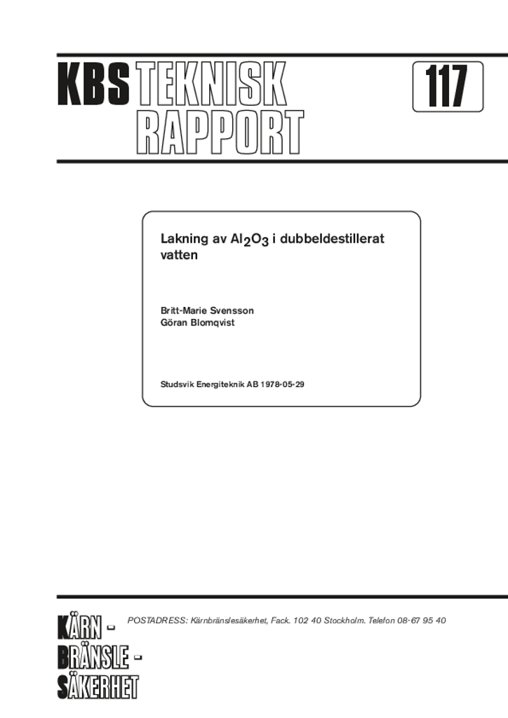 Lakning av Al2O3 i dubbeldestillerat vatten (Leaching of Al2O3 in twice-destilled water)