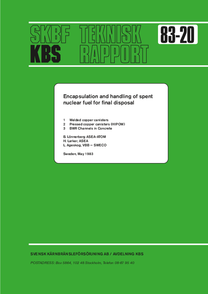 Encapsulation and handling of spent nuclear fuel for final disposal