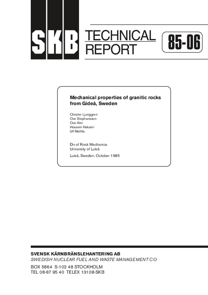 Ljunggren, Christer; Stephansson, Ove; Alm, Ove; Hakami,Hossein; Mattila, Ulf