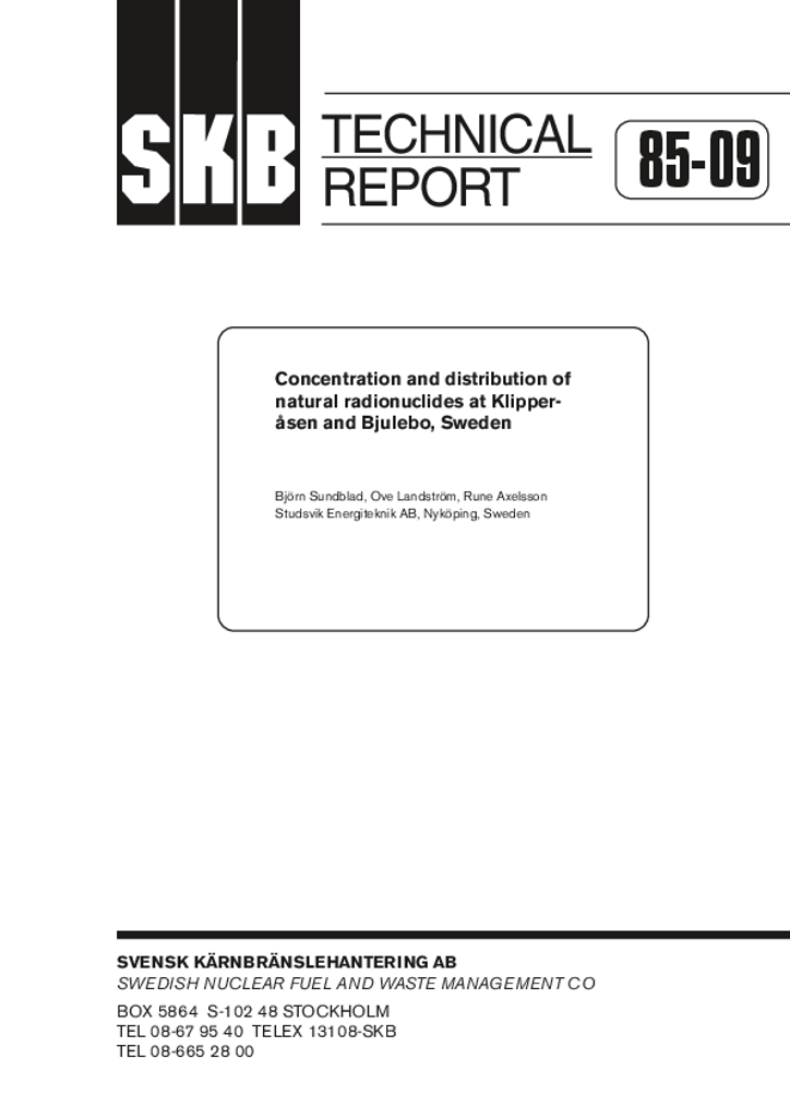 SKB TR 85-09