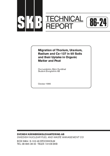 Migration of thorium, uranium, radium and Cs-137 in till soils and their uptake in organic matter and peat