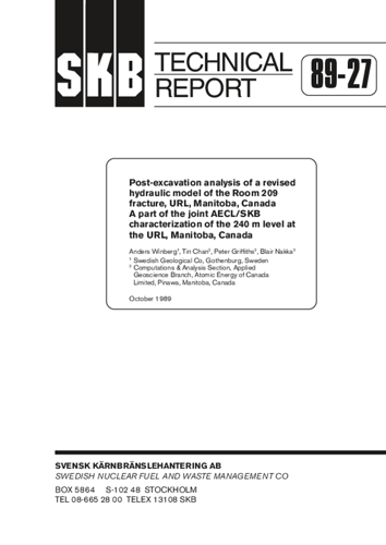 Post-excavation analysis of a revised hydraulic model of the Room 209 fracture, URL, Manitoba, Canada. A part of the joint AECL/SKB characterization of the 240 m level at the URL, Manitoba, Canada
