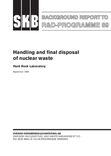 Background report to SKB R&D-programme 89. Handling and final disposal of nuclear waste. Hard Rock Laboratory