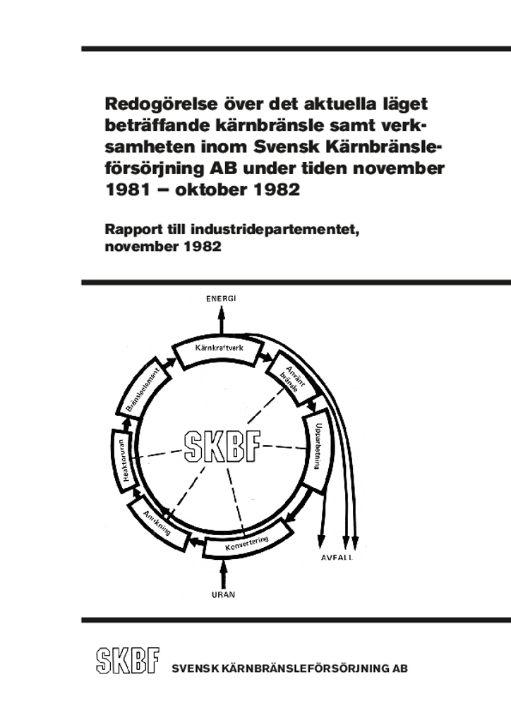 Rapport till industridepartementet, november 1982. Redogörelse över det aktuella läget beträffande kärnbränsle samt verksamheten inom Svensk Kärnbränsleförsörjning AB under tiden november 1981 - oktober 1982