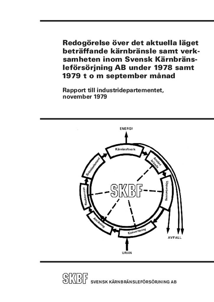 Rapport till industridepartementet, november 1979. Redogörelse över det aktuella läget beträffande kärnbränsle samt verksamheten inom Svensk Kärnbränsleförsörjning AB under 1978 samt 1979 t o m september månad