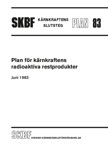 SKBF Kärnkraftens slutsteg PLAN 83. Plan för kärnkraftens radioaktiva restprodukter, juni 1983