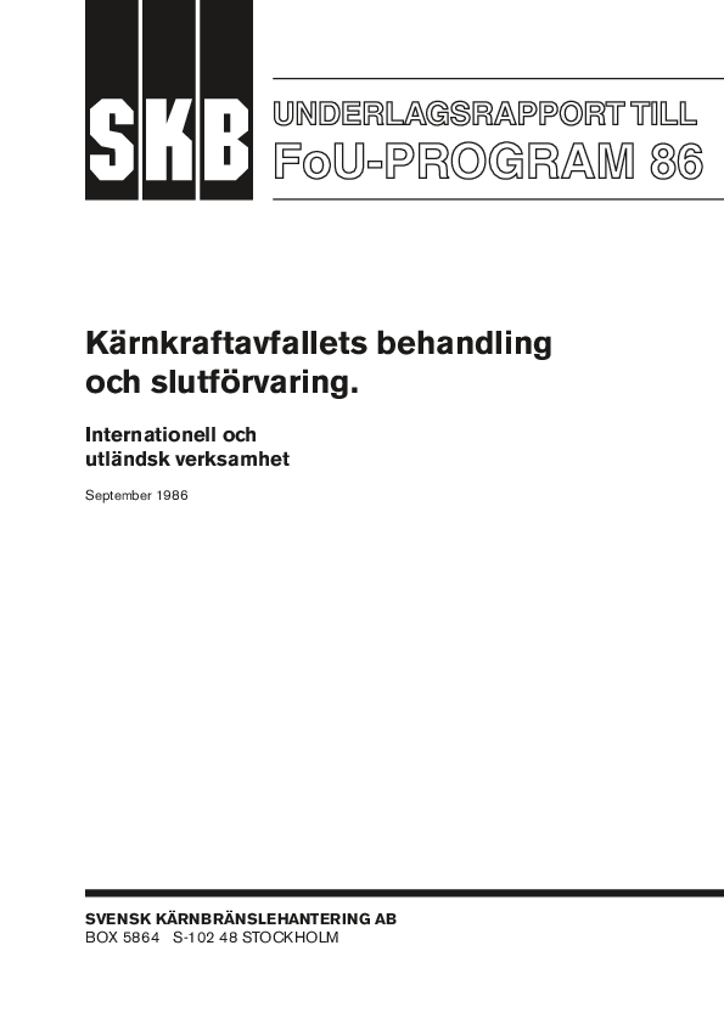 Underlagsrapport till FoU-program 86. Kärnkraftavfallets behandling och slutförvaring. Internationell och utländsk verksamhet