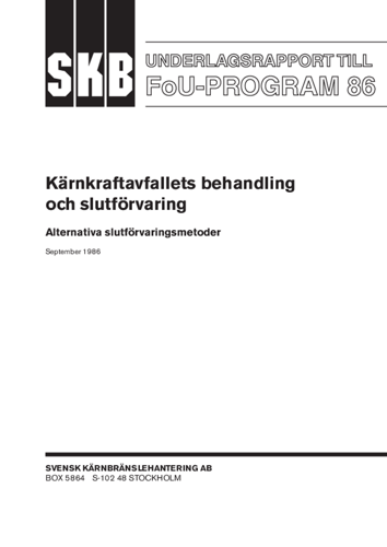 Underlagsrapport till FoU-program 86. Kärnkraftavfallets behandling och slutförvaring. Alternativa slutförvaringsmetoder