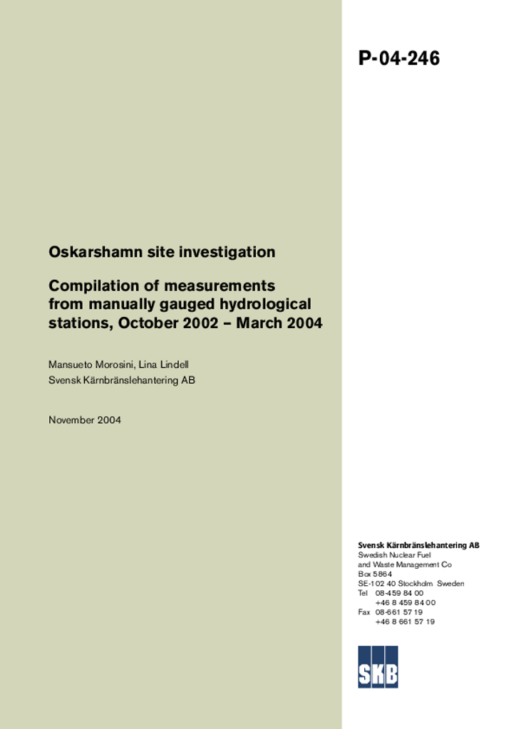 Oskarshamn site investigation. Compilation of measurements from manueally gauged hydrological stations, October 2002-March 2004