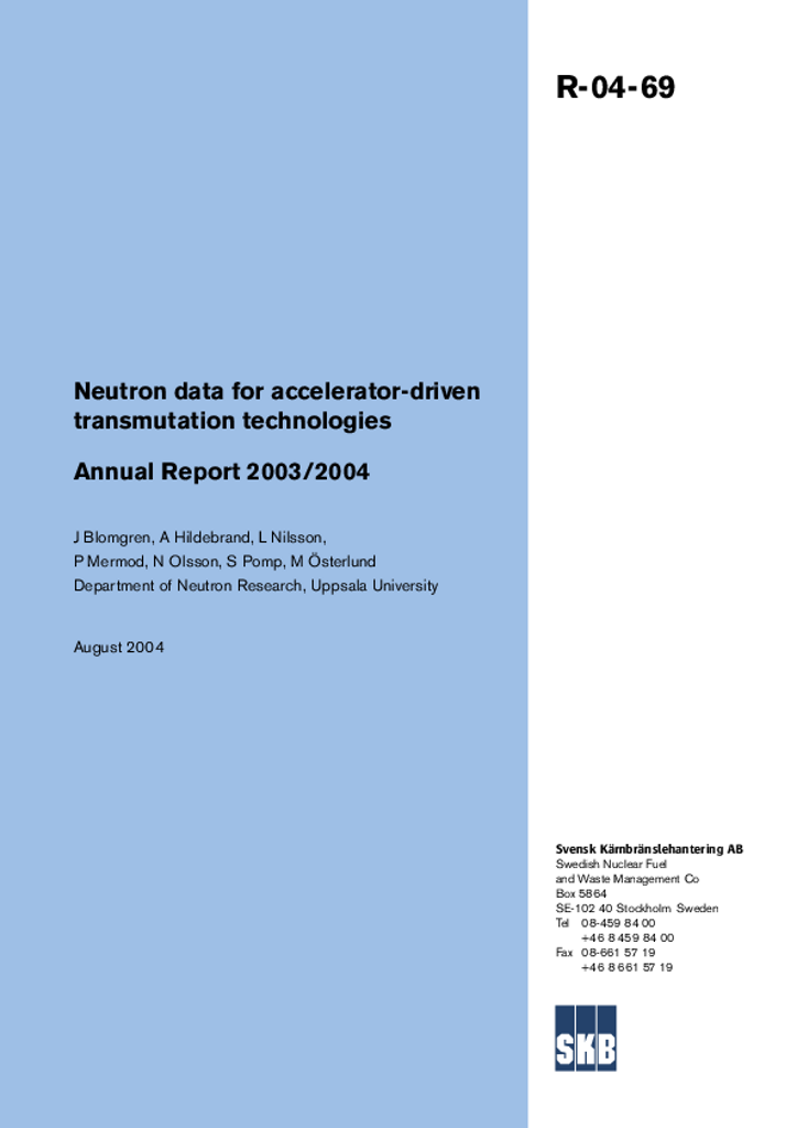 Neutron data for accelerator-driven transmutation technologies. Annual Report 2003/2004