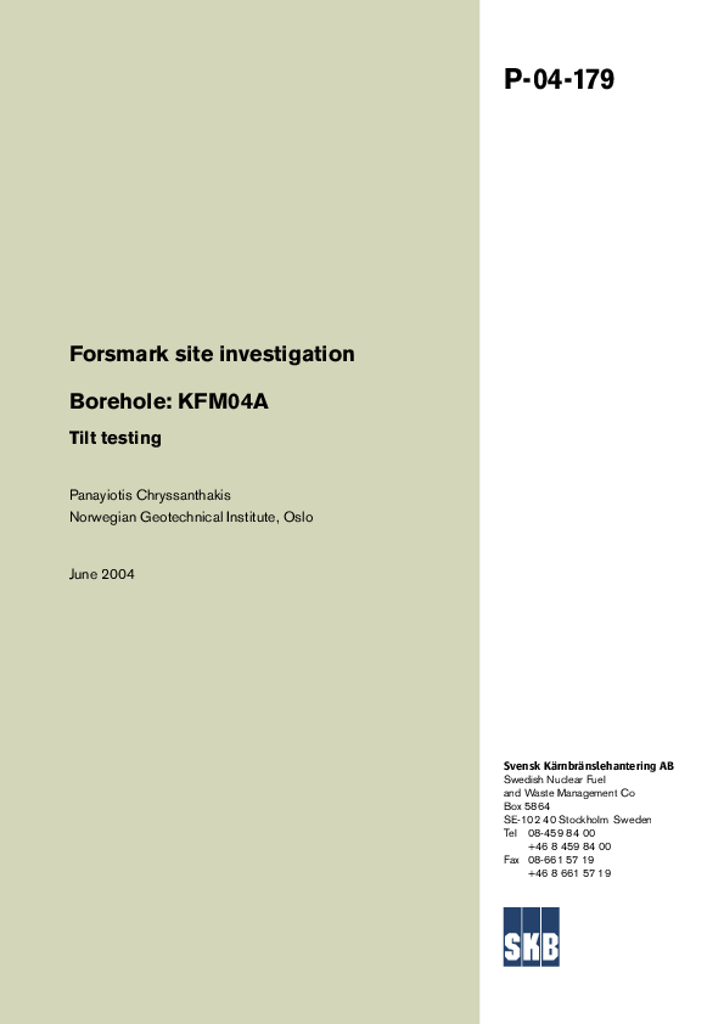Forsmark site investigation. Borehole: KFM04A Tilt testing