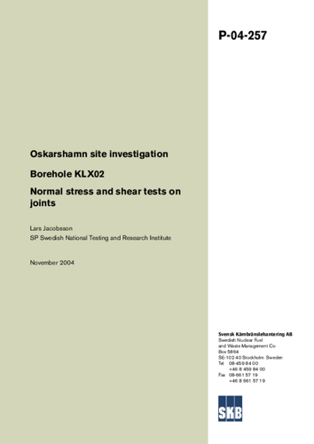 Oskarshamn site investigation. Borehole KLX02 Normal stress and shear tests on joints