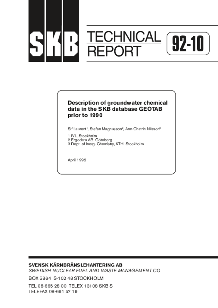 Description of groundwater chemical data in the SKB database GEOTAB prior to 1990