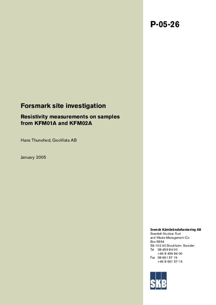 Forsmark site investigation. Resistivity measurements on samples from KFM01A and KFM02A