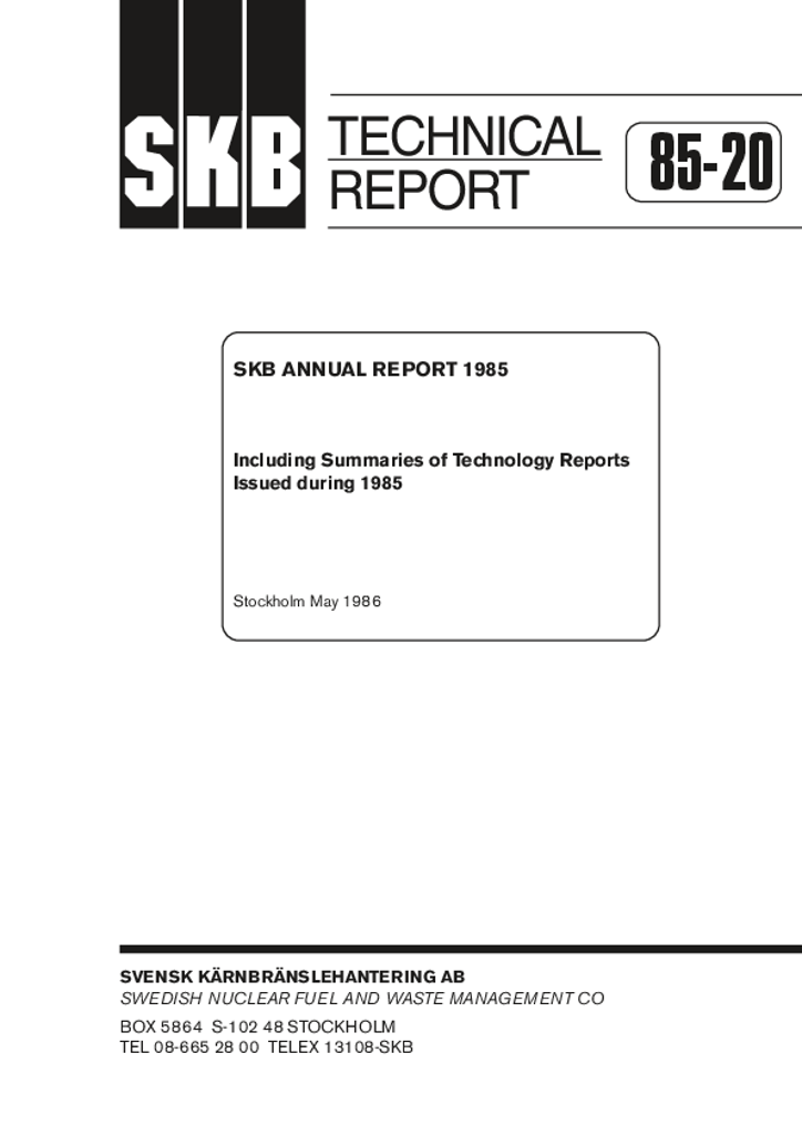 SKB Annual Report 1985 including summaries of technical reports issued during 1985