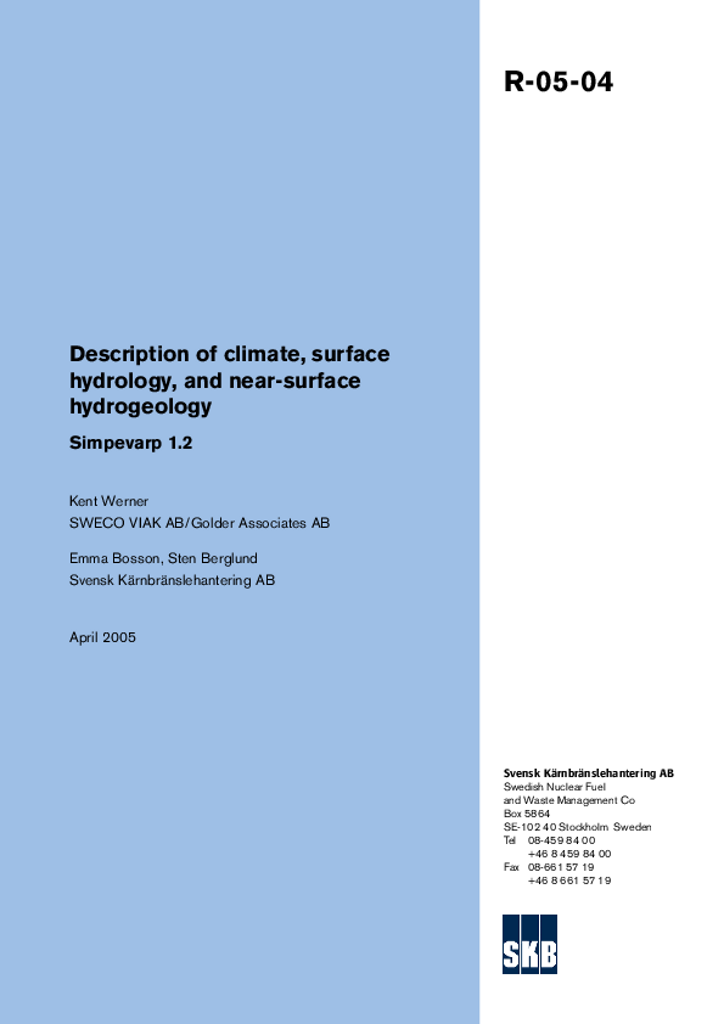 Description of climate, surface hydrology, and near-surface hydrogeology. Simpevarp 1.2
