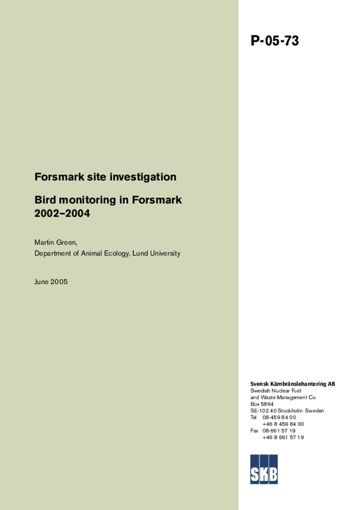 Forsmark site investigation. Bird monitoring in Forsmark 2002-2004