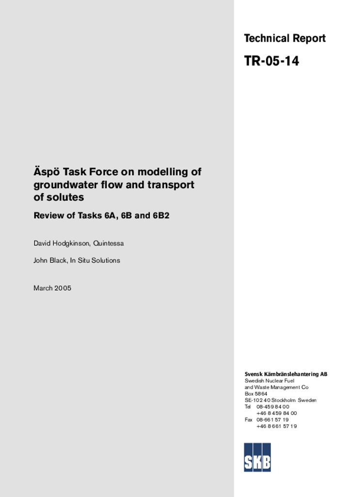 Äspö Task Force on modelling of groundwater flow and transport of solutes. Review of tasks 6A, 6B and 6B2