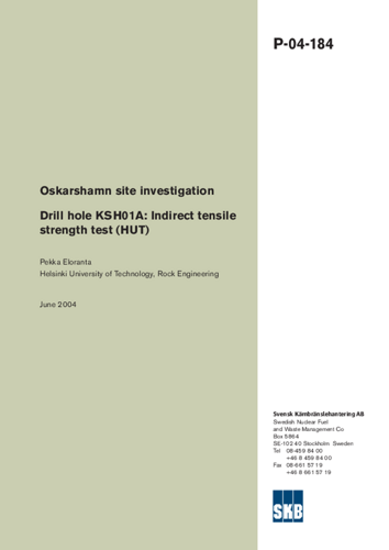 Oskarshamn site investigation. Drill hole KSH01A: Indirect tensile strength test (HUT)