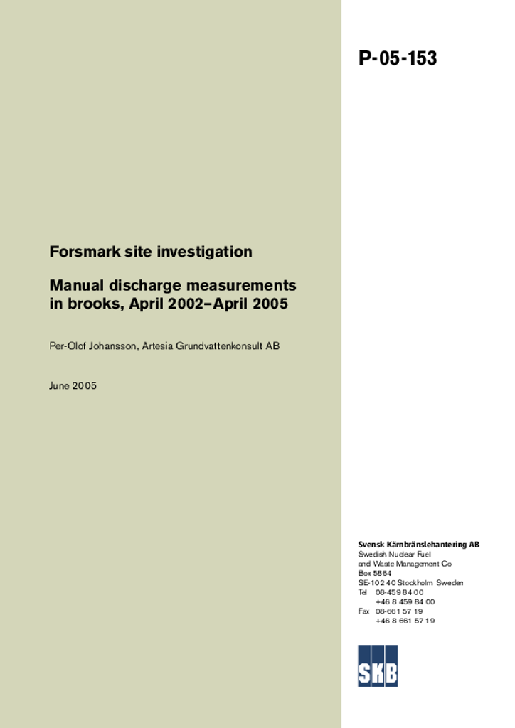 Forsmark site investigation. Manual discharge measurements in brooks, April 2002-April 2005