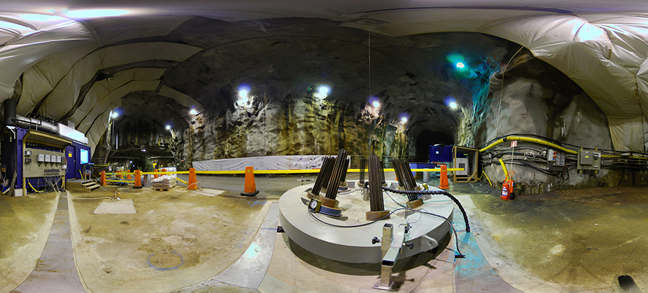 The Äspö Laboratory is a unique research facility and there are only a few like it in the rest of the world. Almost 500 metres underground, we conduct experiments in collaboration with Swedish and international experts. This research means that we can study the interaction of bentonite clay and copper canisters with the rock in realistic conditions. Here experiments are made to identify the role of the rock as a barrier. This can, for instance, concern how the rock slows down the movement of radioactive substances or how microbes affect conditions at this depth.