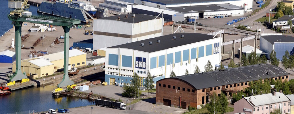 Aerial photograph of the Canister Laboratory at the port of Oskarshamn.